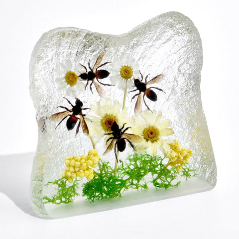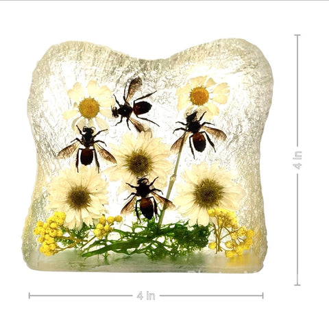 Celebrate the beauty of pollinators with this square-shaped resin paperweight featuring a real honeybee and daisy preserved inside. Perfect as a desktop decoration, collectible, or gift, this piece highlights the vital connection between bees and flowers in nature.